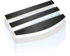 Transparante glazen bak met veilige siliconen naad. De bak is met zwarte siliconen verlijmd en nauwkeurig conform DIN 32622 vervaardigd.
