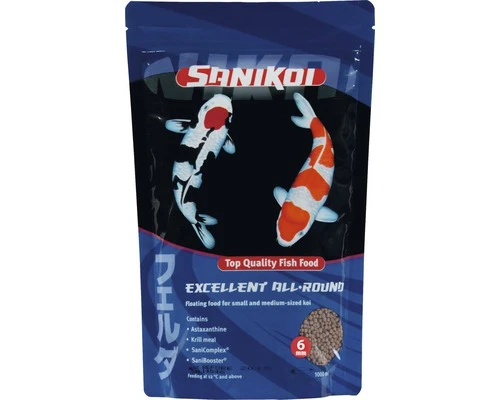 Het SaniKoi Food is een drijvend hoofdvoer dat wordt gebruikt bij watertemperaturen vanaf 12 °C.