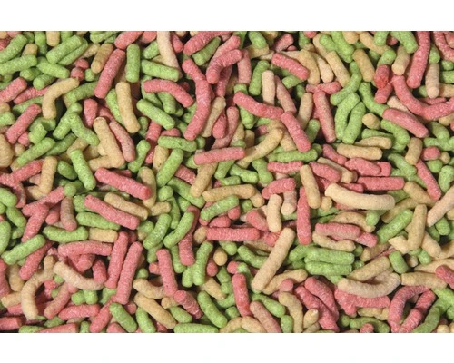 | Samenstelling | Tarwemeel, sojameel, maïs, visolie, vitaminen, kleurstoffen goedgekeurd in de EU: E104-E124-E132. |
